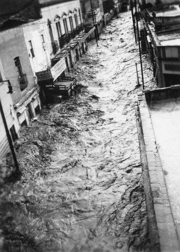 El 24 de junio de 1949, una fuerte tromba que generó grandes volúmenes de escurrimiento hacia la ciudad por el Río de las Avenidas, la falta de mantenimiento al cauce junto con el arrastre de materiales provocó una reducción de la capacidad de conducción y posteriormente su desbordamiento.