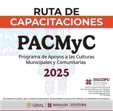 La Secretaría de Cultura de Hidalgo y la Secretaría de Cultura federal han abierto la convocatoria del Programa de Apoyos a las Culturas Municipales y Comunitarias (PACMyC) 2025, dirigido a colectivos y agrupaciones interesadas en desarrollar proyectos culturales en sus comunidades.