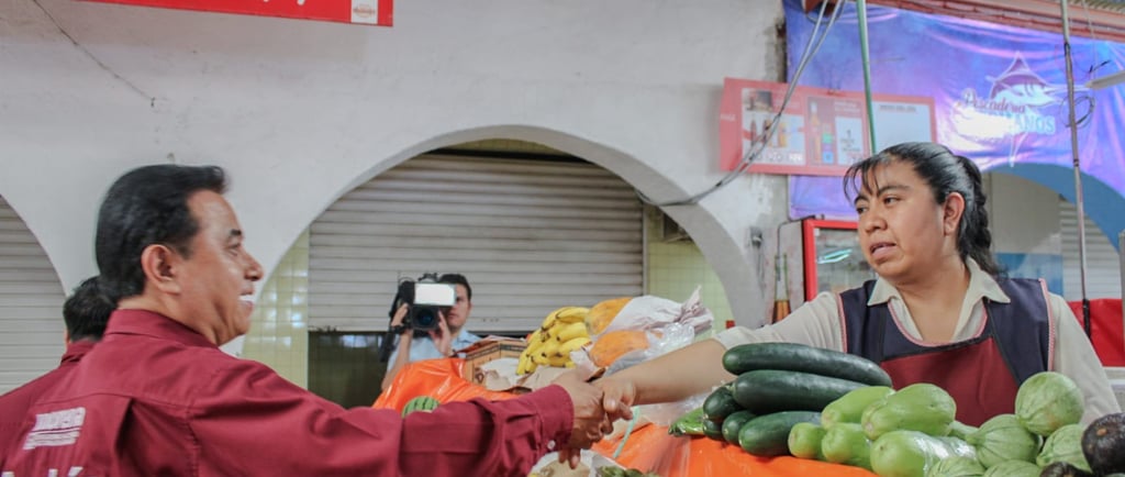 En su recorrido por el mercado, Guzmán Mayer, ubicado en el Centro Histórico, el candidato común de Morena y Nueva Alianza, Andrés Velázquez Vázquez, escuchó locatarios y amas de casa y comerciantes establecidos de la zona