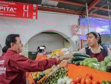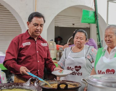 Al término de su recorrido, el abanderado de la 4t platicó con Doña Maura, quién desde hace 41 años labora en el mercado Guzmán Mayer con un local de comida corrida; el candidato degustó un rico platillo y el tradicional taco, y agradeció a la Señora Maura su dedicación y trabajo diario para alimentar a trabajadores de la zona.