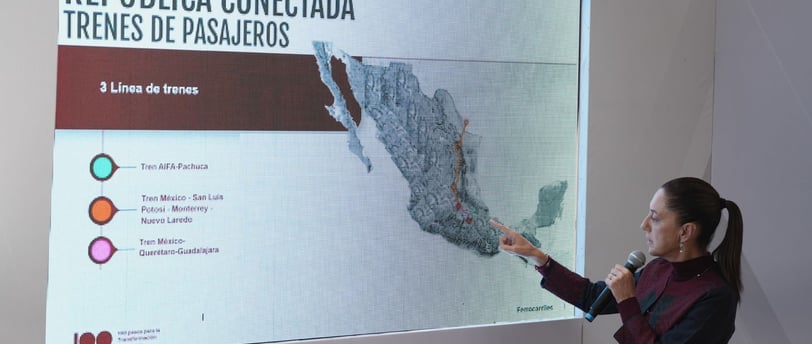 En conferencia de prensa, la virtual Presidenta electa, Claudia Sheinbaum Pardo anunció las tres nuevas rutas del tren de pasajeros que se construirán durante su gobierno, las cuales se tratan del Tren AIFA-Pachuca; Tren México - San Luis Potosí - Monterrey - Nuevo Laredo y del Tren México- Querétaro- Guadalajara, con las que se cumplirá la meta de la construcción de tres mil kilómetros de trenes.