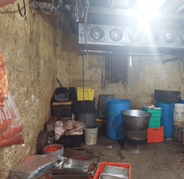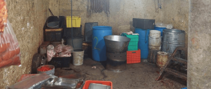 Durante los cateos, se detectaron condiciones insalubres que representan un riesgo para la salud de los consumidores. Las instalaciones presentaban suciedad en paredes, equipo de almacenamiento y desechos mal manejados, generando focos de infección.