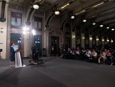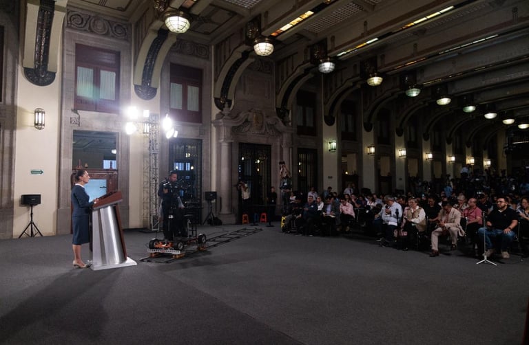 Claudia Sheinbaum en conferencia de prensa en el Palacio Nacional / Créditos: especial