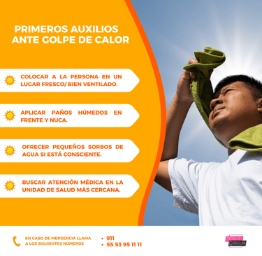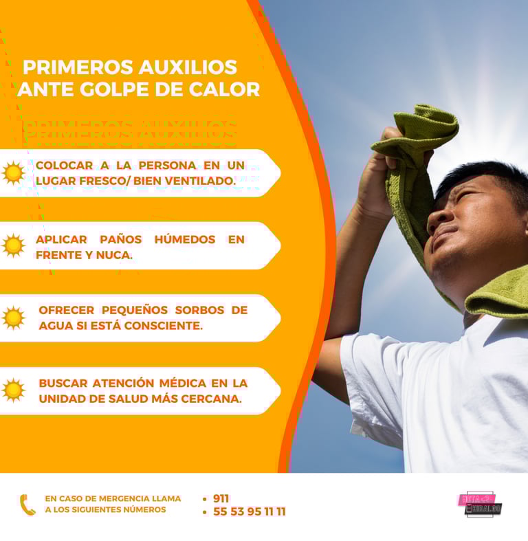 El golpe de calor puede manifestarse tras una exposición prolongada a altas temperaturas, lo que puede ocasionar un incremento peligroso de la temperatura corporal. Es crucial estar atentos a los síntomas, como: temperatura corporal elevada, piel seca, dolor de cabeza, ritmo cardíaco acelerado, fatiga, sed, náuseas, vómitos, somnolencia y espasmos musculares. En casos avanzados, convulsiones y pérdida de conciencia.