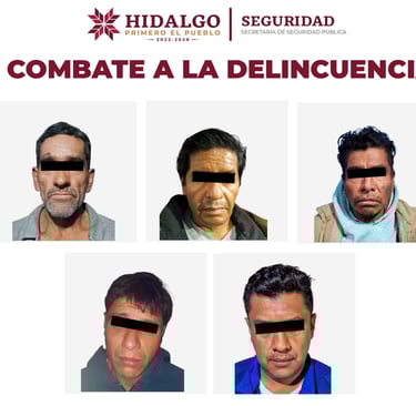 Agentes de la Secretaría de Seguridad Pública de Hidalgo (SSPH), en coordinación con la Procuraduría General de Justicia del Estado de Hidalgo (PGJEH), detuvieron a cinco personas presuntamente relacionadas con actividades de narcomenudeo en la zona metropolitana de Pachuca, tras la ejecución de tres operativos.
