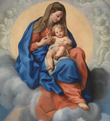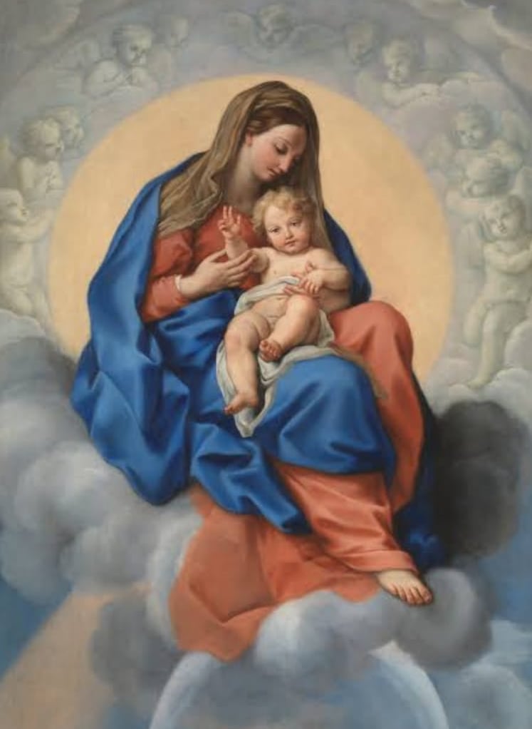 Así tenemos a María la madre de Jesús, de igual manera cargando al niño en su regazo con diferentes advocaciones como la Virgen del Refugio, la del Rosario y del Carmen, etc.