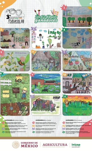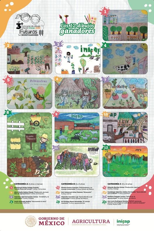Cartel de dibujos ganadores de la tercera edición del concurso de dibujo infantil / Facebook: INIFAP