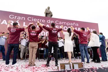 En este cierre de las campañas de las y los candidatos de la 4T, Simey Olvera candidata al Senado de la República y Tania Meza Escorza candidata al distrito XII, coincidieron al señalar que amor con amor se paga. Y que la transformación con Morena habrá unión, compromiso, pero sobre todo bienestar para todos y todas.