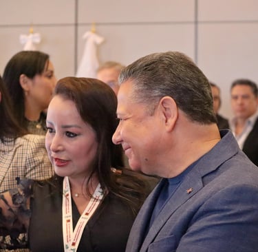 Secretaria de Hacienda, Esther Ramírez Vargas y el gobernador Julio Menchaca.