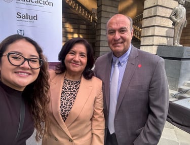 Autoridades estatales encabezadas por la presidenta del Patronato del DIFH, Edda Vite Ramos, la secretaria de Salud, Vanesa Escalante Arroyo, y el secretario de Educación, Natividad Castrejón Valdez, participaron en la presentación de esta iniciativa en la Ciudad de México, junto con la presidenta de México, Claudia Sheinbaum.