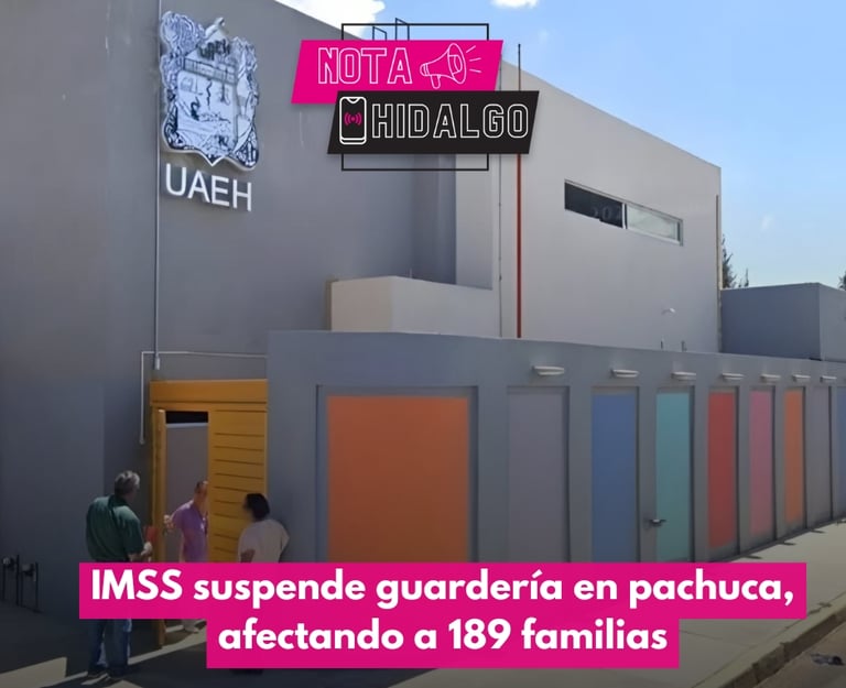 IMSS suspende guardería en Pachuca, afectando a 189 familias.