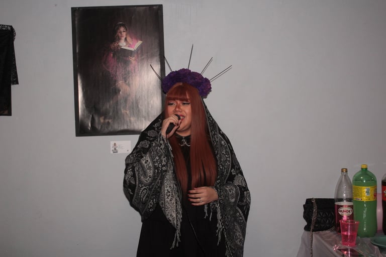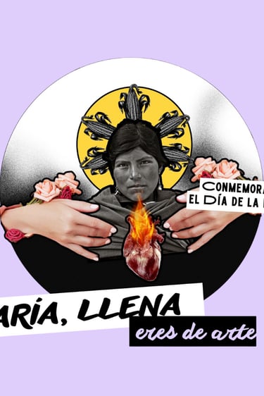 Las colectivas parten de su imagen para descomponer el peso implantado por generaciones de la idealización perfecta que la mujer debe cumplir ante la sociedad. Mediante el logo del evento se logran identificar elementos simbólicos que representan la idea de la adaptación que María debe tener.