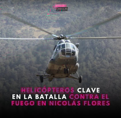 Adicionalmente, a las 15:30 horas se unió al esfuerzo de combate un helicóptero MI 17 proporcionado por la Secretaría de la Defensa Nacional (SEDENA), capaz de transportar 4 mil litros de agua. Estos esfuerzos combinados son cruciales en la batalla contra el incendio en Nicolás Flores.
