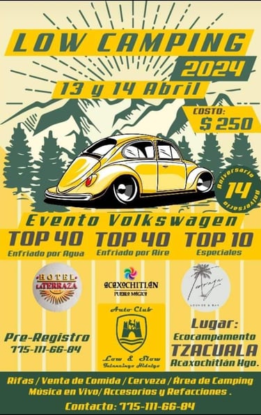 Se acerca la primera edición del evento Low Camping, dirigido a todos los amantes de este auto clásico, en el pintoresco ecocampamento Tzacuala, que se realizará los días 13 y 14 de abril, a partir de las 10:00 horas.