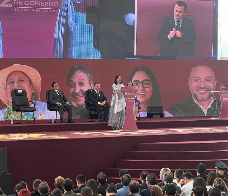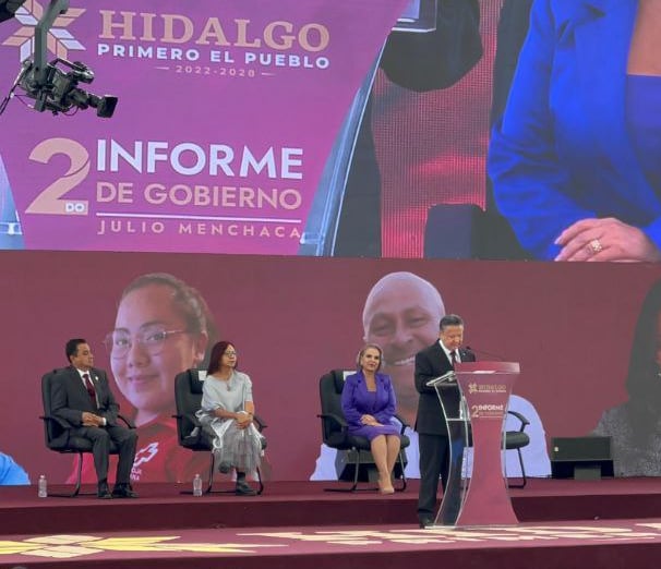 En una ceremonia que reunió a importantes figuras del ámbito político, el gobernador de Hidalgo, Julio Menchaca Salazar, presentó su Segundo Informe de Gobierno ante el pueblo de Hidalgo. Entre los asistentes destacaron la secretaria de Educación Pública de México, Mtra. Leticia Ramírez Amaya; Santiago Nieto, ex encargado del despacho de la Procuraduría General de Justicia de Hidalgo; los gobernadores electos de Chiapas y Tabasco; Andrés Velázquez Vázquez, diputado presidente de la Junta de Gobierno del Congreso del Estado de Hidalgo; y la magistrada Rebeca Stella Aladro Echeverría, presidenta del Tribunal Superior de Justicia y del Consejo de la Judicatura, en representación del Poder Judicial del Estado de Hidalgo.