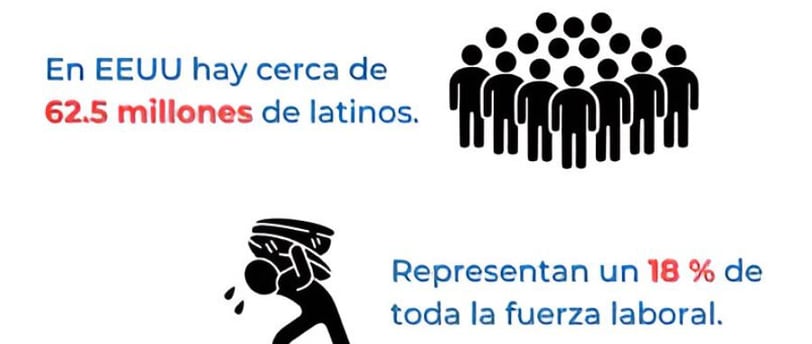 Representación de la participación laboral de latinos en Estados Unidos.