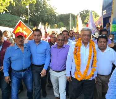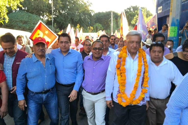 Javier Vázquez en marcha de PT junto con AMLO / Facebook: Javier Vázquez Calixto