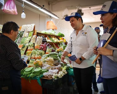 Durante el recorrido entre los tradicionales mercados de la colonia Morelos y Revolución, las y los comerciantes y clientes compartieron de las muchas necesidades para trabajar con ellos desde el Congreso Local.