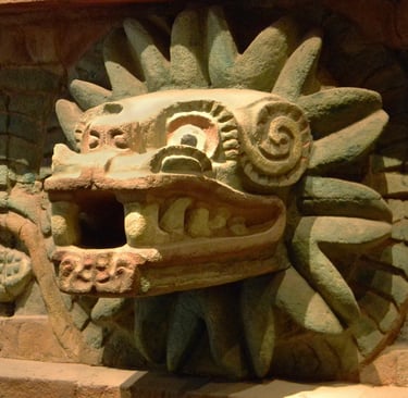 Quetzalcóatl creador del hombre, el señor de la aurora, nube de lluvia que dio a la humanidad el maíz, el pulque, y en su penosa retirada robo el árbol del cacao de la tierra florida alimento de los Dioses ahora para los hombres.