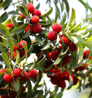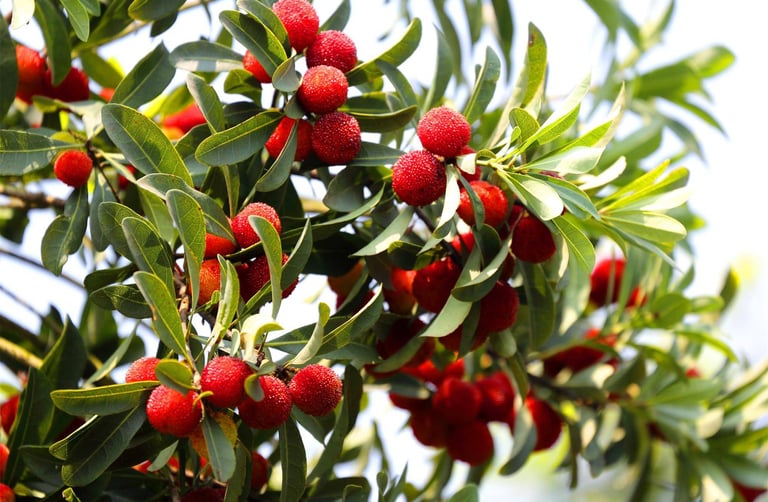 El Yangmei Shu, también conocido como bayberry o arándano chino, es una fruta endémica de China, particularmente popular en las regiones del sur como Zhejiang, Fujian y Guangdong.