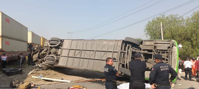 Tren arrolla a un autobús de pasajeros en Atitalaquia