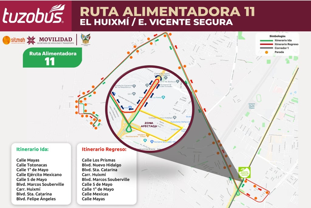 Los desvíos iniciarán a las 5:30 horas y se mantendrán hasta la reapertura de las vialidades. Se recomienda a los usuarios planear su viaje considerando estos cambios y mantenerse informados a través de las redes sociales oficiales y la aplicación móvil del Tuzobús.